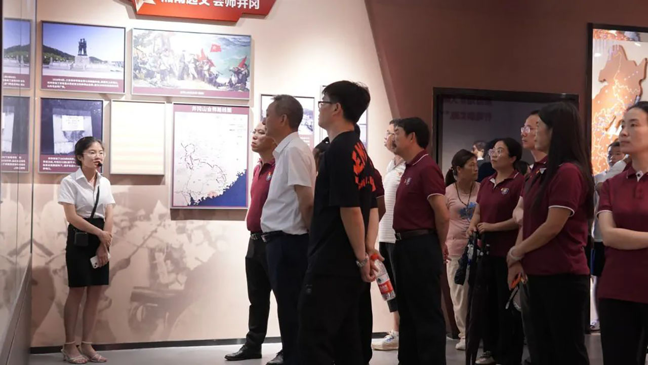 鄧華將軍生平業(yè)績(jī)陳列館分“湘南赤子”“華夏英杰”“四野名將”“抗美援朝”“將軍本色”“家國(guó)情深”六個(gè)部分,采用文字講述、圖片佐證、實(shí)物展示、多媒體演繹等方法再現(xiàn)了解放海南和抗美援朝戰(zhàn)役的恢宏場(chǎng)面深刻展示了燦爛凝重的軍事文化。大家在珍貴的史料、實(shí)物前駐足觀看。陳列館講解員現(xiàn)場(chǎng)為大家講解,一起回顧將軍波瀾壯闊的革命歲月,詳細(xì)了解了將軍投身共產(chǎn)主義事業(yè)戎馬一生的奮斗歷程。