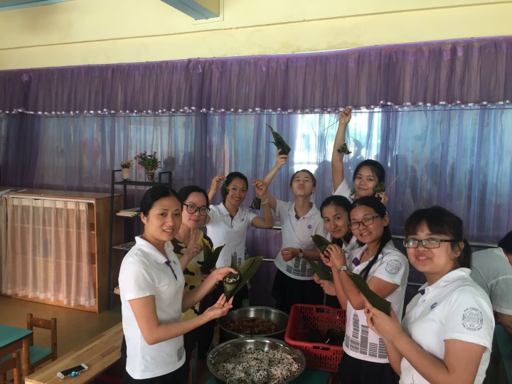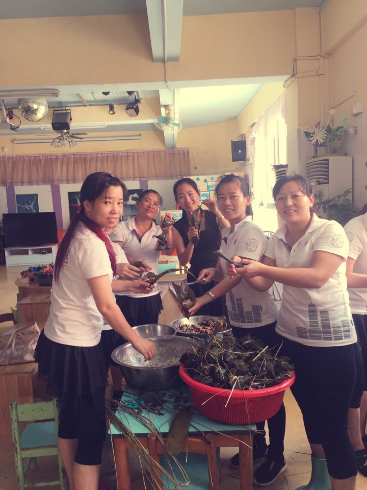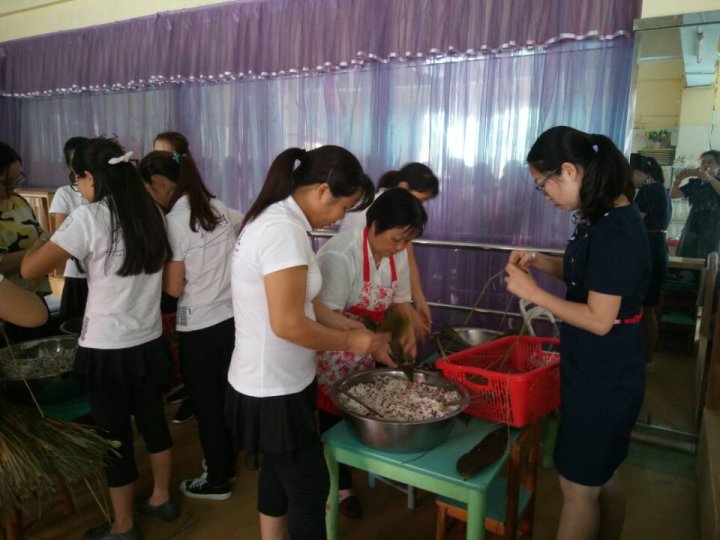 現(xiàn)場歡聲笑語,其樂融融,不僅讓很多沒包過粽子的老師們逐漸掌握包粽子的竅門,也讓大家在互幫互助的過程中,進一步增進同事間的感情,并共享“佳”人情。
