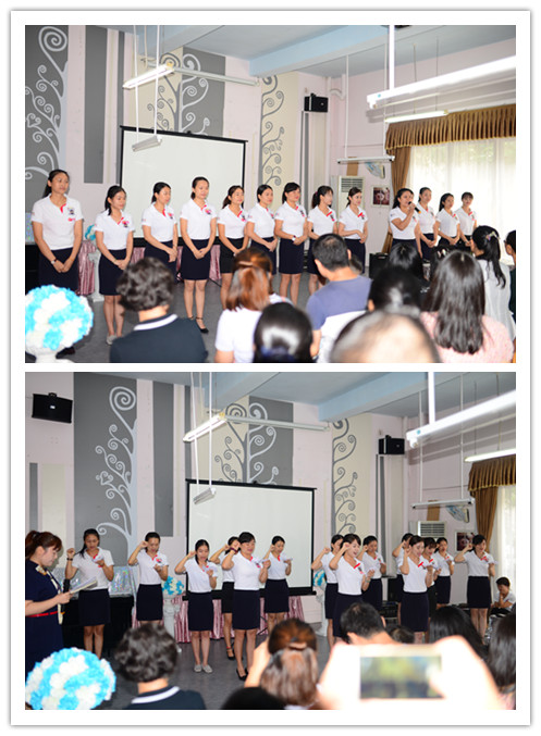 我們幼兒園老師們上臺做簡單的自我介紹以及宣誓