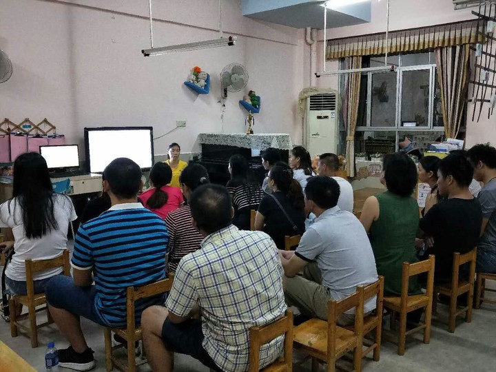 家長會(huì)議現(xiàn)場秩序井然,家長們非常認(rèn)真