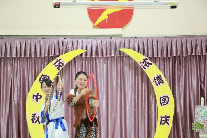 你看!首先是由老師們主演的情景劇《嫦娥奔月》!活動在黎老師輕盈曼妙的舞姿以及各位老師的傾情演出中迎來了陣陣歡呼!孩子們在欣賞中了解有關(guān)中秋的傳統(tǒng)習俗和神話故事吧!