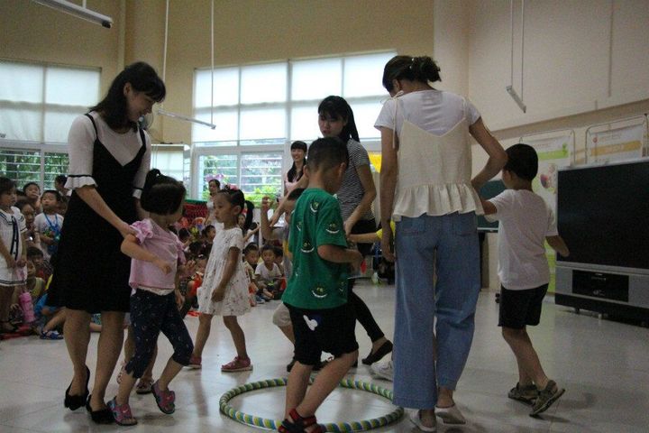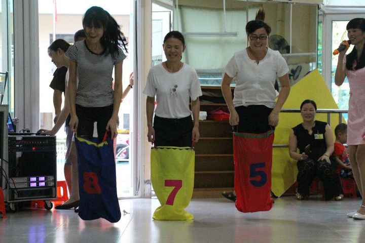 抱團游戲:《月圓家園事事圓》。在活力十足的游戲音樂中,老師和小朋友們大手緊緊牽著小手繞著圈圈走,在主持人出其不意的報數(shù)聲中,老師和小朋友們默契十足迅速跳入圈圈里緊緊抱在一起!