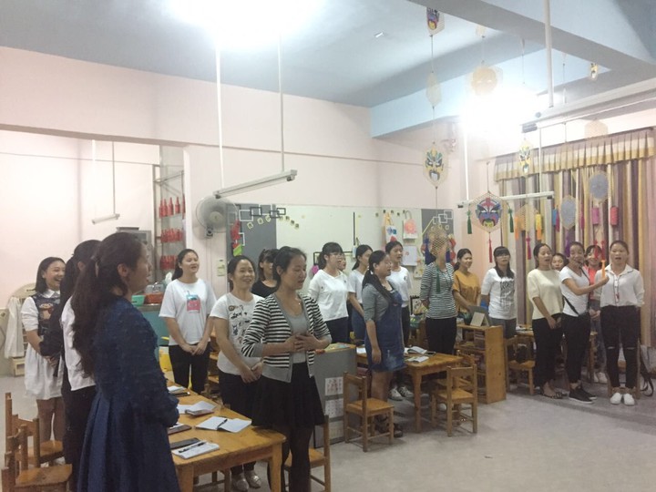 當(dāng)然教研中也還是會(huì)發(fā)現(xiàn)很多教師在進(jìn)行音樂教學(xué)時(shí),方法過于保守,缺乏創(chuàng)新能力,或者對(duì)于新穎的教學(xué)方法信心不足、理解不透歌曲想要表達(dá)的具體內(nèi)容。在歌唱教學(xué)中發(fā)現(xiàn)教師會(huì)陷入了一個(gè)固定的教學(xué)模式,教歌詞——學(xué)節(jié)奏——跟唱,而且每次在歌唱教學(xué)的時(shí)候老師是最累的,以老師的范唱為主;小朋友的學(xué)習(xí)方式也比較被動(dòng),唱到后面都不太感興趣了,而且怎樣去引導(dǎo)孩子聲音的控制。有的孩子唱歌的時(shí)候聲音特別大,臉都紅了,這很傷害他的嗓子,遇到這樣的問題作為老師只有口頭的說,但還有沒有別的比較好的方法?在歌唱教學(xué)中幼兒需不需要一些歌唱的技能技巧?針對(duì)這一現(xiàn)象我們的教研活動(dòng)現(xiàn)場(chǎng)進(jìn)行了研討,相關(guān)內(nèi)容給出了解決的方法。再運(yùn)用鋼琴練習(xí)專業(yè)的發(fā)聲方法,實(shí)踐中去引導(dǎo)老師正確的練聲、氣息的運(yùn)用、發(fā)聲的正確位置、如何保護(hù)好嗓子、音準(zhǔn)等,練習(xí)中對(duì)老師們進(jìn)行專業(yè)的輔導(dǎo),集體練聲時(shí)檢查老師們的發(fā)聲技巧,解決老師們聲樂中存在的困惑,讓老師理解后再去引導(dǎo)幼兒發(fā)出好聽的聲音,保護(hù)好嗓子。讓大家學(xué)會(huì)貼近幼兒認(rèn)知去教授、如何處理在歌唱教學(xué)中的重難點(diǎn)、正確的發(fā)聲方法、基本的音準(zhǔn)練習(xí),認(rèn)真的上好每一堂音樂課。教研出更好的方式方法讓幼兒更加喜愛我們的音樂,體會(huì)音樂所帶給我們的共同快樂。