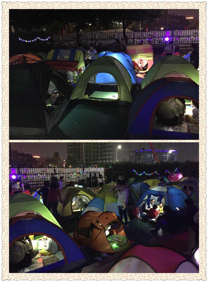 活動(dòng)開(kāi)始,帳篷全亮起來(lái)了。在燈光的照射下,帳篷顯示各種顏色,有藍(lán)的,有紅的,有紫的……有沒(méi)有你最?lèi)?ài)的那一頂!
