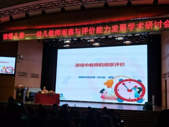 下午,成都軍區(qū)機(jī)關(guān)第一幼兒園園長謝蓉、杭州市京都學(xué)前教育集團(tuán)園長吳春紅東進(jìn)行了《游戲中教師的觀察與評(píng)價(jià)》的主題講座。
