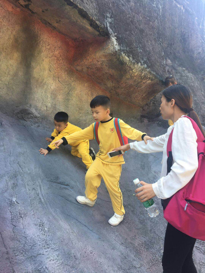 這些孩子們在興奮地吵鬧著,你一言我一語,好像有講不完的話,話題肯定是圍繞著“秋游”。在孩子們的期待中我們終于出發(fā)了,一共7輛旅游大巴,共316人。氣勢很壯觀!一路上,孩子們的歡歌笑語此起彼伏,這歡快的氣氛感染著我們每一個人。