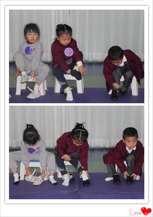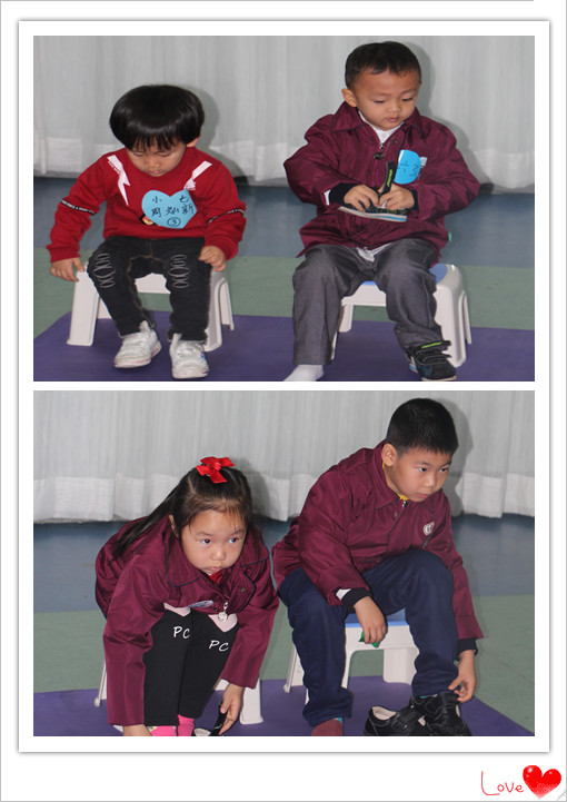 再把鞋子穿好,看看誰做的最標(biāo)準(zhǔn)呢?