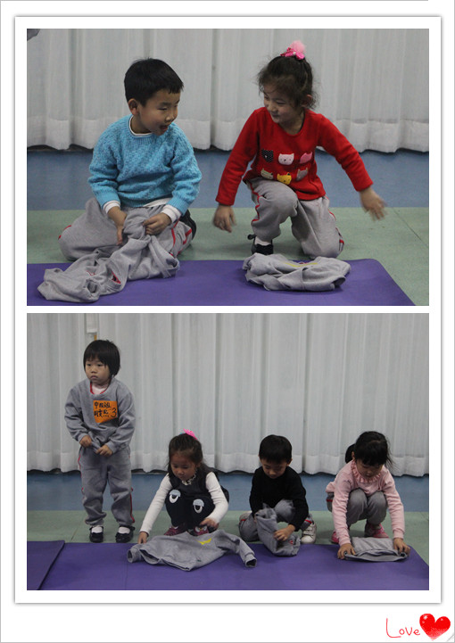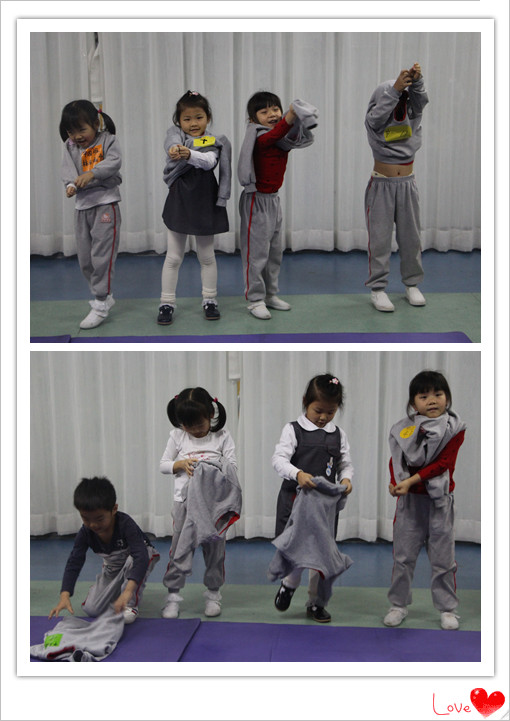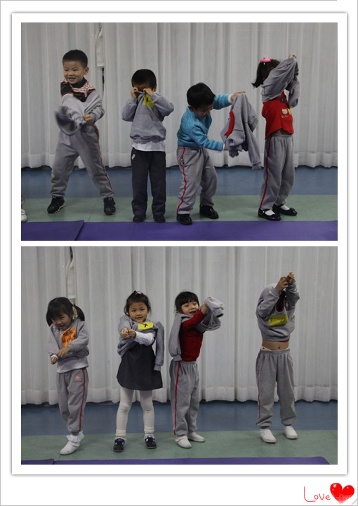 ●中班:套灰色運(yùn)動服(套頭衣服并脫下來整理)