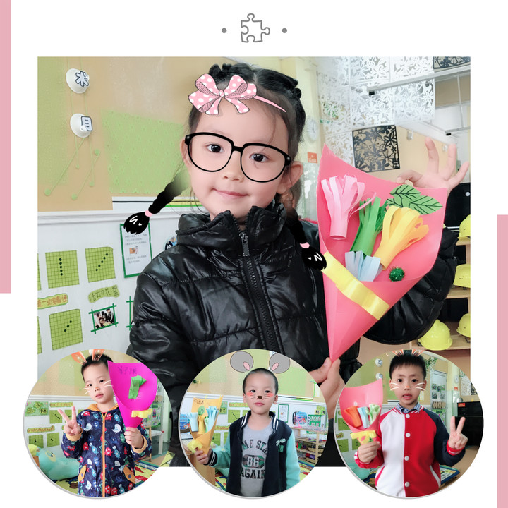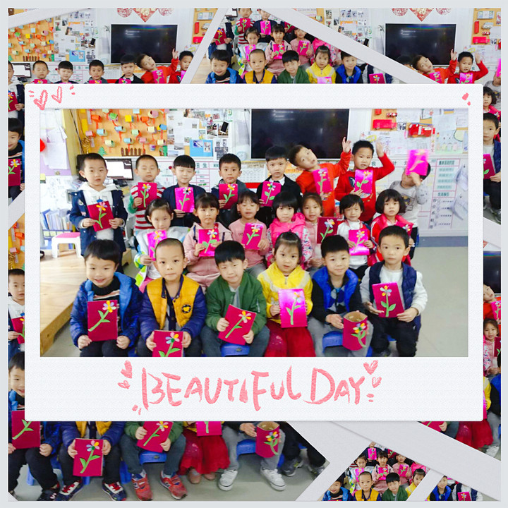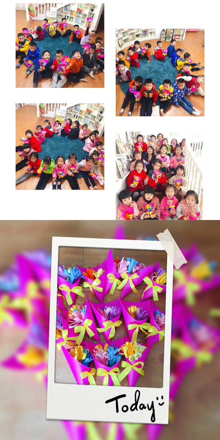 “祝我們的女神麻麻節(jié)日快樂!”這應(yīng)該是寶貝們期待今天最想說的話了。活動開始后,因為是要送給媽媽的禮物,所以大家非常認真,從剪紙、粘貼到最后老師幫忙裝飾,每個細節(jié)都小心翼翼,生怕做出不完美的作品。一張張笑靨如花的孩子們手捧親手制作的花,將愛盡情地展現(xiàn)出來,即使只是一個拍照時的小動作,也會帶給我們快樂,讓這無憂無慮的小時代在延續(xù)著。