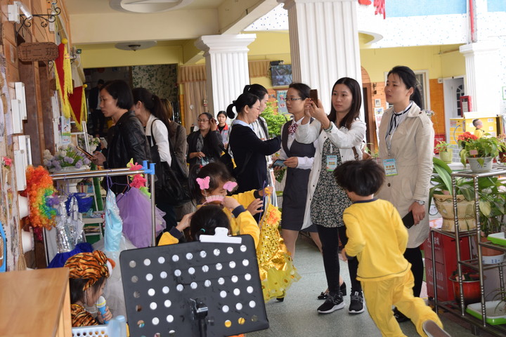 早操展示中,孩子們天真、稚氣的笑容讓園長們感受到了孩子參與活動的積極性非常高;班級環(huán)境整體規(guī)劃、晨談墻、區(qū)域、作品表征、植物角和成長檔案等處處體現(xiàn)了幼兒園“以幼兒為本”的教育觀念,園長們都認真地觀察孩子的每一個活動,細細地關(guān)注每一個角落,用手機拍下認為有參觀價值的畫面。