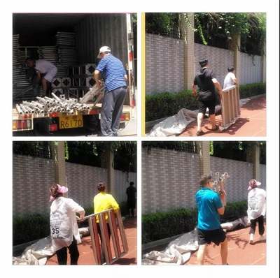 三十多度的高溫下,家長朋友們不畏酷暑,在為舞臺搭建忙碌著!