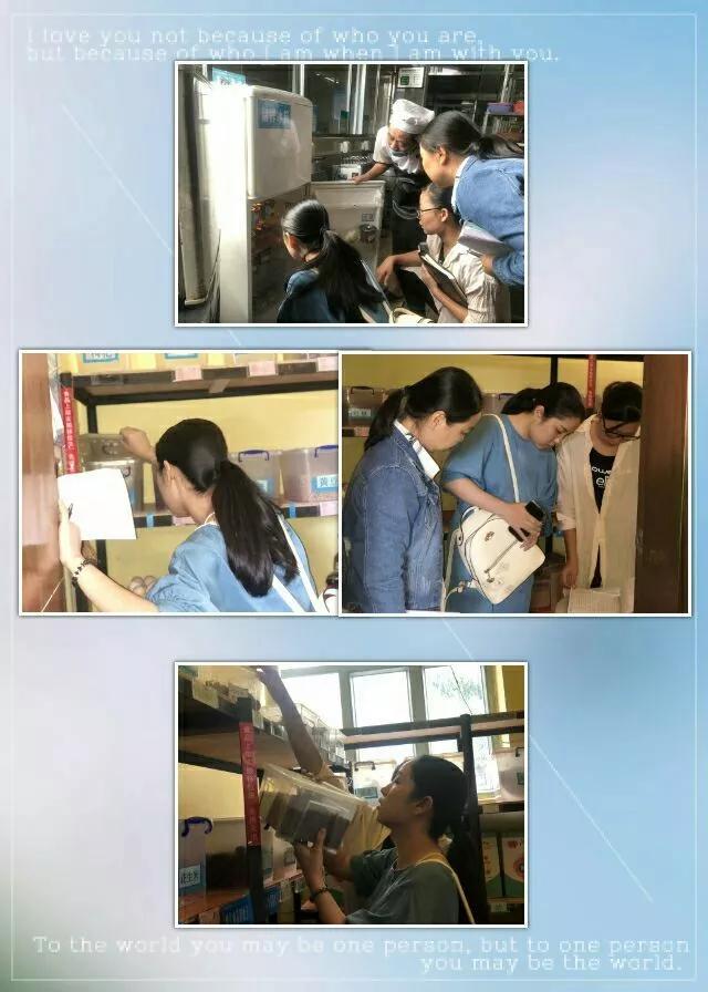 11月1日,集團(tuán)學(xué)前管理中心萬(wàn)婷婷教研員來(lái)到我園廚房,對(duì)每一個(gè)角角落落的衛(wèi)生情況認(rèn)真檢查,對(duì)每一餐的食品留樣情況詳細(xì)核實(shí),查看食品倉(cāng)庫(kù)的食材出入登記,并一件一件的打開查看保存情況。