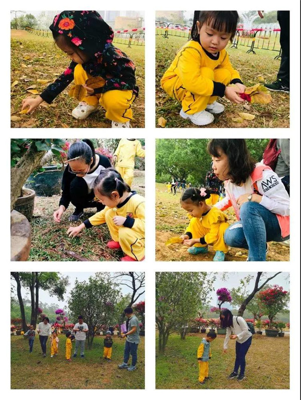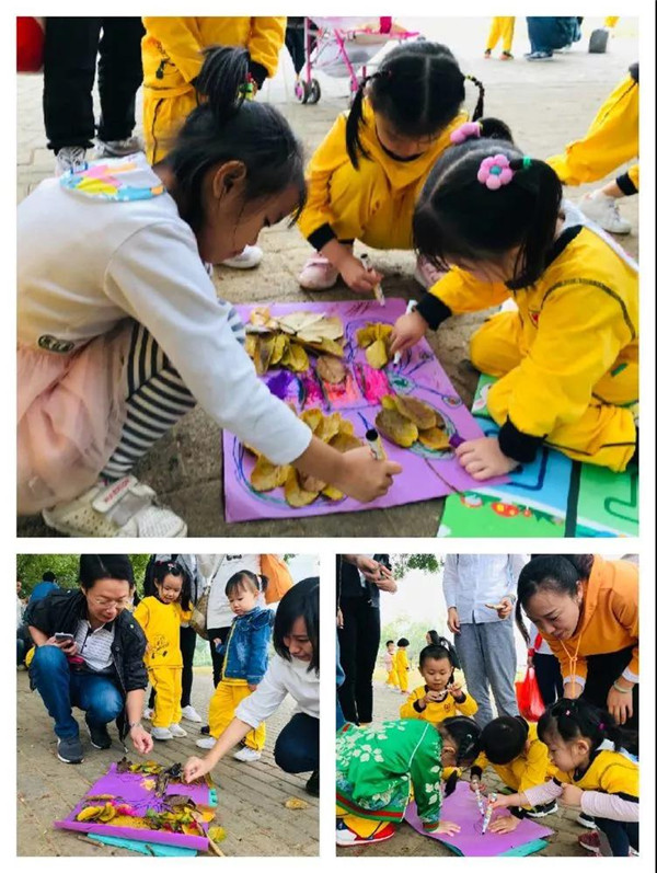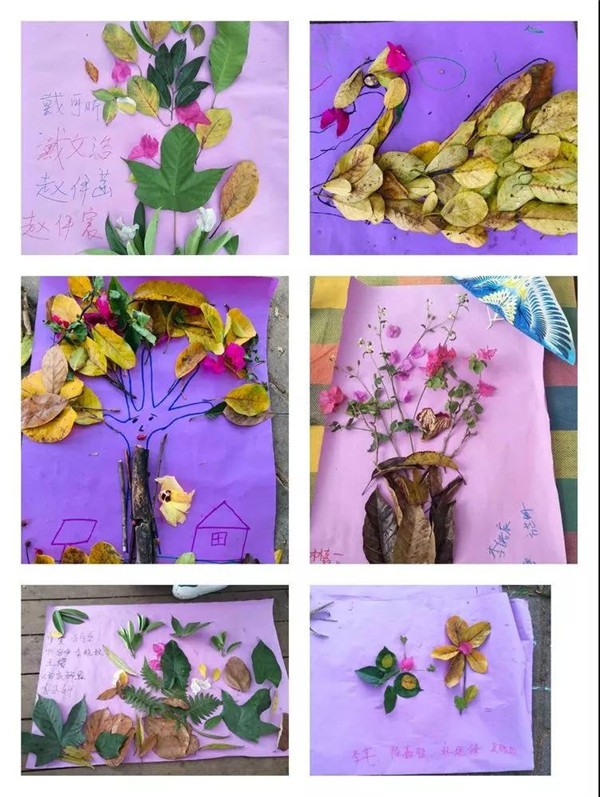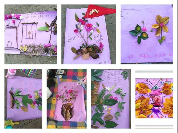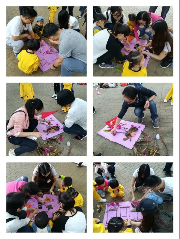 第二個(gè)環(huán)節(jié)是以大自然為主題,按小組為單位撿自然材料與爸爸媽媽共同完成一幅作品,比比誰(shuí)的最好看!