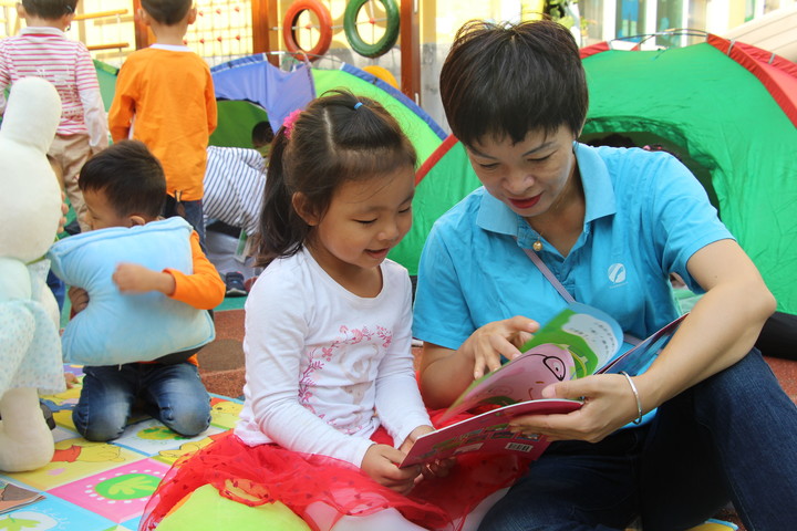 到了自主閱讀的時間啦!小朋友們坐在一起翻閱著圖書繪本,看的真入神??!瞧!他們還時不時的一起交流討論呢。有的小朋友還和老師一起閱讀,聽媽媽們講故事,真是個令人快樂的時光!多希望時間定格在這里,有你有我有圖書,就這樣快樂又簡單的生活著。