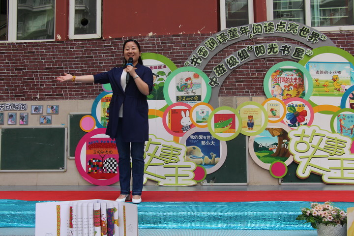 接下來(lái)有請(qǐng)可愛的園長(zhǎng)媽媽,給中班級(jí)組“陽(yáng)光書屋”活動(dòng)致開幕詞!