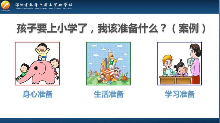 感謝龍華中英文實(shí)驗(yàn)學(xué)校對(duì)幼兒園幼小銜接工作的大力支持。相信通過(guò)本次幼小銜接專題講座,家長(zhǎng)們更加明確如何做好幼兒入學(xué)心理準(zhǔn)備,為順利進(jìn)入小學(xué)提前做好相關(guān)準(zhǔn)備工作。