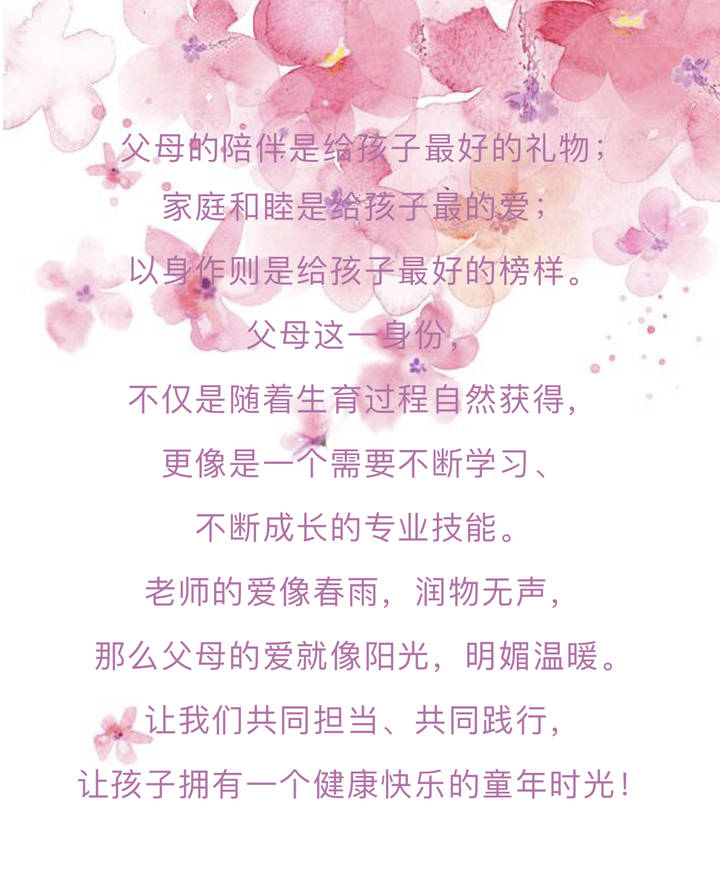 聽說神不能無處不在,所以創(chuàng)造了爸爸媽媽,“爸爸媽媽”這個(gè)詞,只是叫一叫,也會(huì)觸動(dòng)了我們的心弦,在我們的眼里,你們是超人,散發(fā)著無比巨大的能量,沒有你們做不到的事情。我這么好看,都是你們的功勞!謝謝您們,謝謝您們把我寵成小公主、小王子,雖然這些無法用語言來表達(dá)完對您們的愛,讓我們給你們一個(gè)熱烈的大熊抱吧:謝謝您們,爸爸媽媽您們太棒了!我們一定不會(huì)讓你感到失望的,我會(huì)珍惜和你們在一起的每一刻,您們是我最愛的人,長大后,我愿用自己的雙手為您們撐起一片艷陽天。