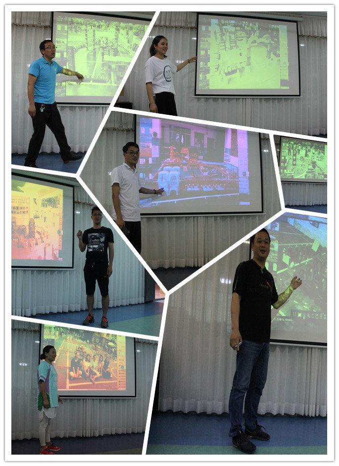 轉眼間,40分鐘的搭建時間很快就結束了,家長們聚集在音體室,由各組代表介紹自己的作品,向大家展現(xiàn)了屬于他們心中的精彩世界。最后老師帶領幼兒觀摩學習,探討搭建方法,積極尋找改進措施。