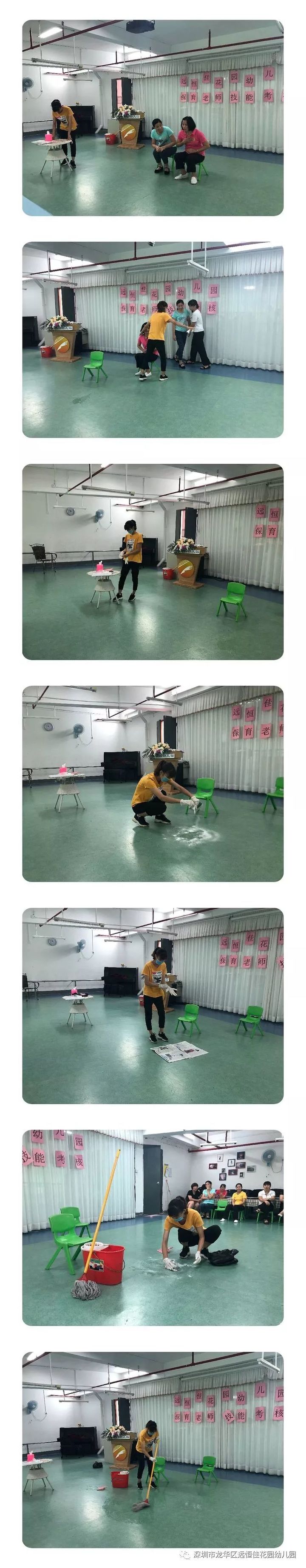 為貫徹《幼兒園工作規(guī)程》、《幼兒園教育指導(dǎo)綱要》、《廣東省幼兒園一日活動(dòng)指引》精神,有效提高保育員業(yè)務(wù)素質(zhì),加強(qiáng)我園保育工作的整體水平,增強(qiáng)保育員對(duì)保育工作重要性的認(rèn)識(shí),真正做到“保教結(jié)合,教養(yǎng)并重”,2019年5月23日上午,遠(yuǎn)恒佳花園幼兒園在音體室開展了保育知識(shí)與技能考核評(píng)比活動(dòng)。