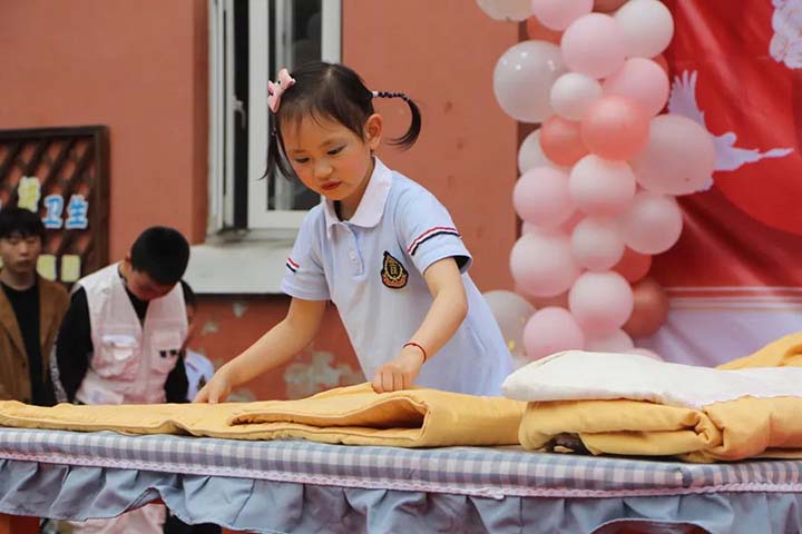 勞動(dòng)技能展示:大班疊被子、折衣服
