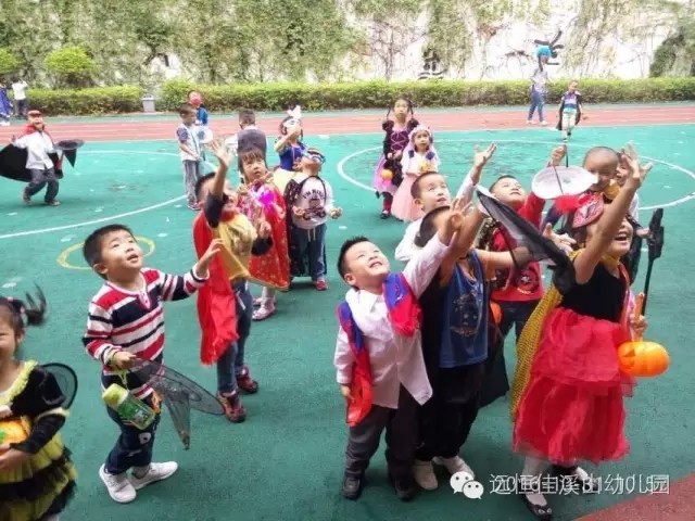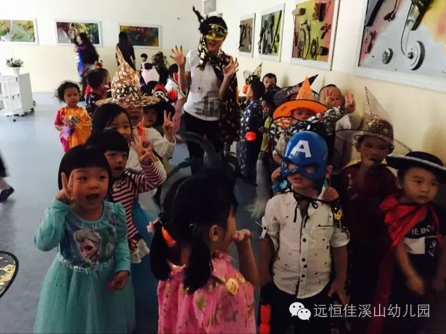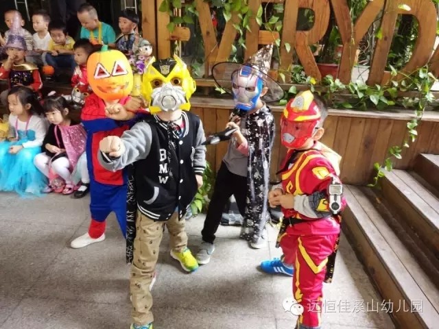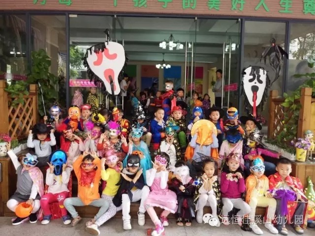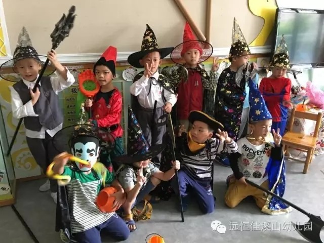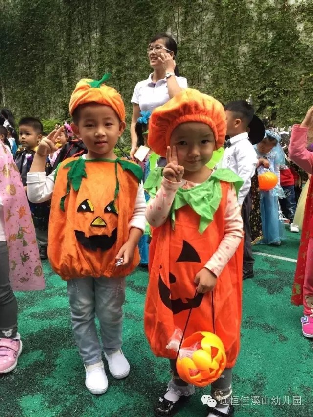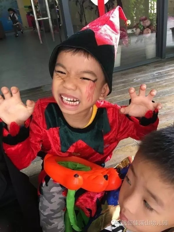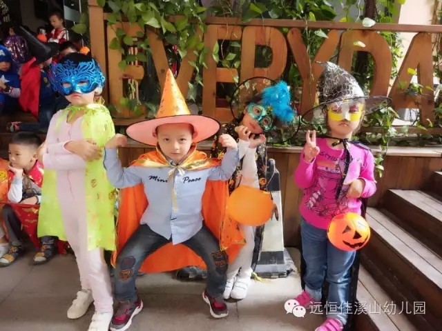 裝扮篇: 一大早,溪山幼兒園的孩子們就穿著各式各樣的萬圣節(jié)服裝開開心心地來幼兒園,幼兒園里瞬間變成了一個童話的世界,有小天使,有杰克船長,有小巫婆,還有小蝙蝠,有哈里波特,有鐘樓怪人,有葫蘆娃……各種角色,小朋友們互相津津樂道的聊起自己的裝扮的角色,開心又有趣,一片歡騰,幼兒園里處處洋溢著濃濃的節(jié)日萬圣節(jié)氛圍。