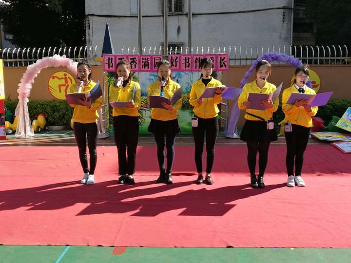 十一月,我們伴隨涼爽的秋風(fēng)走進(jìn)了書海,在書海中盡情地遨游,讀書讓我們快樂,讀書讓我們成長,讀書為我們的人生奠基。歷經(jīng)一個(gè)月的讀書活動,我們收獲了太多的幸福與快樂,書香伴隨著我們成長,書香伴隨著我們迎來了閱讀月的閉幕式,2016年11月28日上午,全體教師和幼兒相約在大操場參加閱讀月閉幕式活動,活動內(nèi)容豐富多彩,有師幼互動舞蹈《老師親 媽媽親》,有親子童話劇《拔苗助長》,有動人心弦的故事表演《弗洛格找寶藏》,有富含深深韻味的詩朗誦《人生最美是讀書》,以及讀書月作品的頒獎等等,一個(gè)個(gè)精彩的節(jié)目把閉幕式活動推向了高潮,也讓我們回想起這一個(gè)月來開展的系列活動,每周三和周五3:50—4:10分在小操場進(jìn)行家長故事團(tuán)劇場,總是那么讓人流連忘返;11月14日教師的書籍漂流活動,讓更多的老師分享了心愛的書籍,更重要的讓老師們進(jìn)行了心與心的交流; 11月15日教師組的《我的教育故事》演講比賽,讓我們聆聽了每位老師的故事;11月16日各班級幼兒在本班級的“圖書漂流活動”,讓幼兒的書進(jìn)行了“書的旅行”;11月24日保育老師“講故事比賽”,讓我們看到了保育老師可親可愛的一面;以及小班組<剪貼畫>中班組<好書推薦>大班組<閱讀手抄報(bào)>制作比賽;一次次的活動都還歷歷在目,都讓人回味無窮;接下來看看我們今天的精彩紛呈活動圖片報(bào)道。