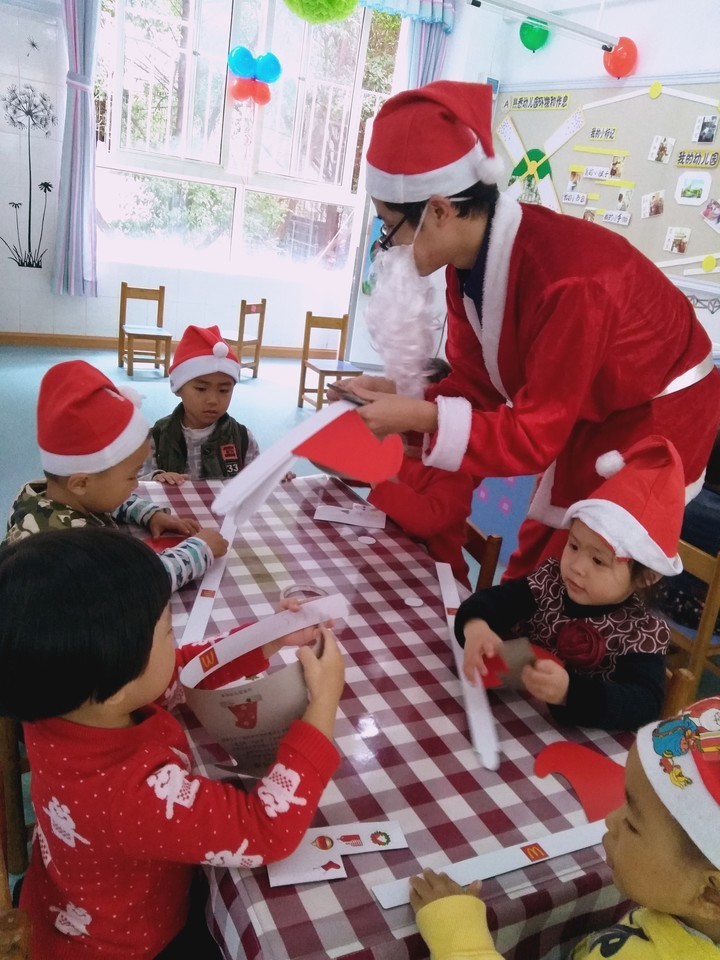 接著各班級(jí)都展開了豐富多彩的圣誕節(jié)活動(dòng)。有的班級(jí)通過(guò)講故事讓孩子們了解圣誕節(jié)的由來(lái)和感受歡樂(lè)的氣氛;有的班級(jí)帶著孩子們制作圣誕襪或者圣誕老人;有的班級(jí)帶領(lǐng)孩子們扮演圣誕老人給全園的孩子們發(fā)糖果;還有的班級(jí)則是請(qǐng)來(lái)了家長(zhǎng)義工扮演圣誕老人帶著孩子們一起玩游戲、分享禮物。
