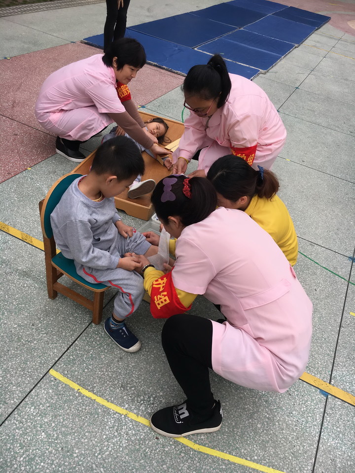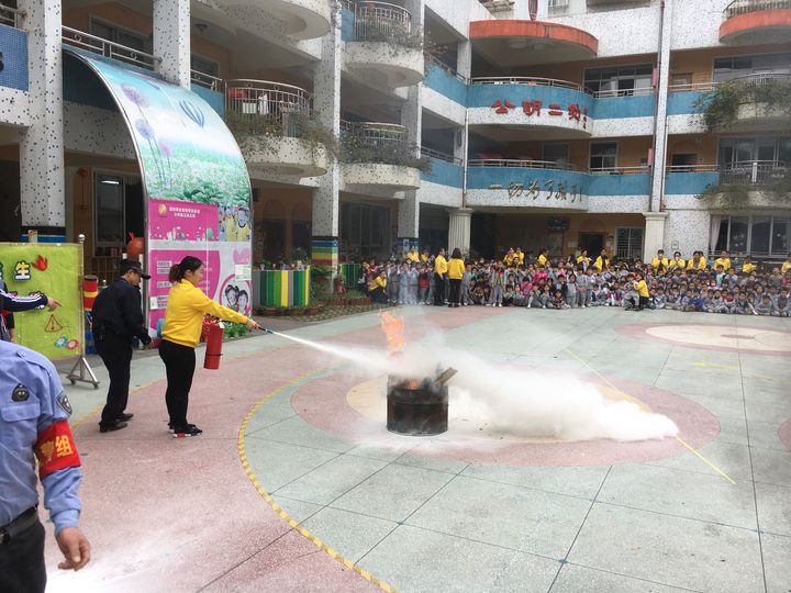 幼兒園對(duì)本次消防逃生演練進(jìn)行了精心策劃和嚴(yán)密組織,成立了以下疏散演練指揮組(1)報(bào)警組(2)疏散組(3)救護(hù)組(4)滅火組(5)警戒保衛(wèi)組,并。在消防演練前召開會(huì)議,明確了演練步驟、老師職責(zé)、疏散路線等具體要求。各班老師也在演練前對(duì)孩子進(jìn)行了消防安全知識(shí)教育,學(xué)會(huì)如何預(yù)防火災(zāi),如何在火場(chǎng)進(jìn)行自救逃生等知識(shí)。消防演習(xí)的緊急疏散過(guò)后,師生與救護(hù)組一同模擬被困救援。救護(hù)組與老師配合將受傷幼兒迅速帶離到操場(chǎng),救護(hù)組用自己豐富的工作經(jīng)驗(yàn),有條不紊的引導(dǎo)老師與她們一起給兩名受傷幼兒進(jìn)行緊急處理。這次演練與以往不一樣的是后勤主任給孩子們講解消防安全知識(shí)后,大班的哥哥姐姐進(jìn)行了火場(chǎng)逃生技能展示:1.火災(zāi)發(fā)生時(shí),煙氣大多聚集在上部空間,煙氣具有溫度高、毒性大特點(diǎn),穿過(guò)濃煙逃生時(shí)要盡量身體貼著地面或是匍匐前進(jìn),用濕毛巾捂住口鼻;2.彎腰低姿前行,用濕毛巾捂住口鼻迅速撤離;3.受到火勢(shì)威脅時(shí),披上浸濕的衣物、被褥向安全出口沖出去。接著由管理處的消防人員介紹了滅火器的使用步驟及運(yùn)用技巧、現(xiàn)場(chǎng)演示滅火器操作流程并讓教職工現(xiàn)場(chǎng)操作滅火器使用。
