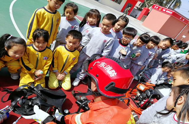 接著叔叔帶我們參觀了各種消防車,有排煙消防車、搶險(xiǎn)救援車、云梯消防車、泡沫水灌車,并詳細(xì)地給孩子們講解了每輛車的名稱、功能、操作事項(xiàng)及車內(nèi)的各類救援器材和在救援任務(wù)中的用途。我們個(gè)別老師和小朋友還親生體驗(yàn)做云梯車,消防員叔叔還告訴我們深圳最高的云梯消防車伸高能達(dá)到101米,平時(shí)這些車輛停在車庫每天都要做兩次保養(yǎng),以確保災(zāi)難發(fā)生時(shí)能正常操作。
