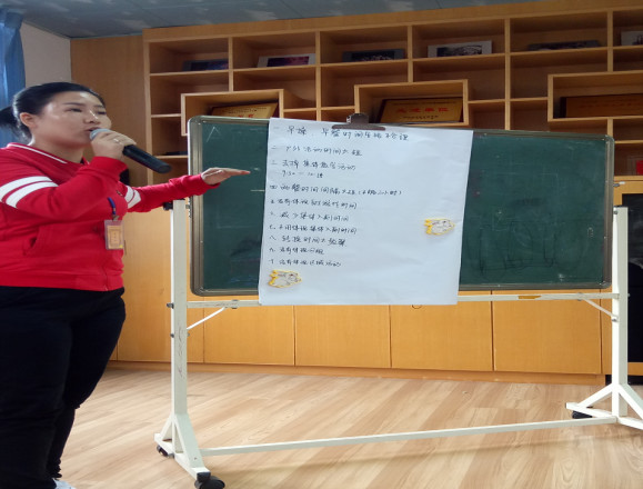 觀看了幼兒的早操后,我們進(jìn)行分組研討,首先討論了一日生活有哪些類型、我們討論得出有“生活活動(dòng)、體育活動(dòng)、自主游戲活動(dòng)、學(xué)習(xí)活動(dòng)”。接下來(lái)我們組研討的是則是“各幼兒園半日活動(dòng)安排”,研討后各組進(jìn)行代表發(fā)言,領(lǐng)導(dǎo)點(diǎn)評(píng)。