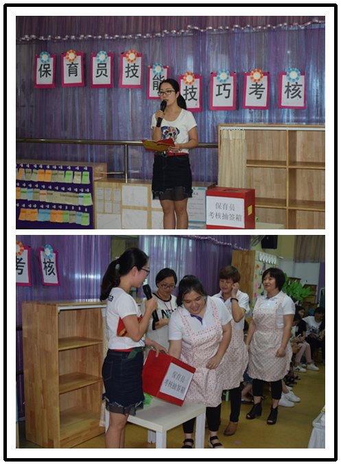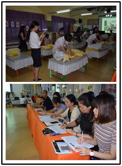 為促進(jìn)我園保育老師基本專業(yè)技能的發(fā)展,促進(jìn)保教結(jié)合,建設(shè)一支高素質(zhì)高質(zhì)量的保育員隊(duì)伍,不斷提高我園保育工作、管理水平和保育質(zhì)量;我園在5月份對(duì)全園保育老師進(jìn)行技能技巧考核,考核分筆試和實(shí)操。實(shí)操考核內(nèi)容為“1.疊被子2.擦桌子”。本次考核疊被子,擦桌子這些內(nèi)務(wù),主要目的是要規(guī)范保育員日常操作流程以及提高保育員工作的效率,讓保育員的內(nèi)務(wù)工作能力更上一層樓。