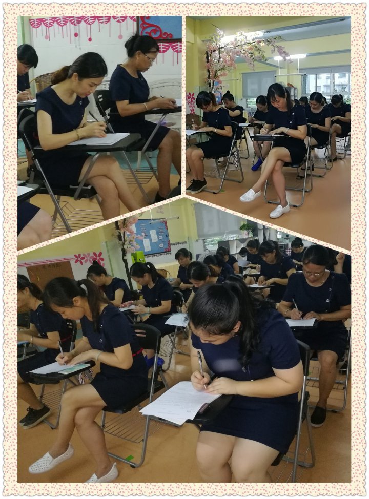 筆試部分:考試試卷為AB卷閉卷考試在技能技巧考核的實(shí)操部分,我們邀請(qǐng)了年級(jí)家委代表及園領(lǐng)導(dǎo)作為評(píng)委。