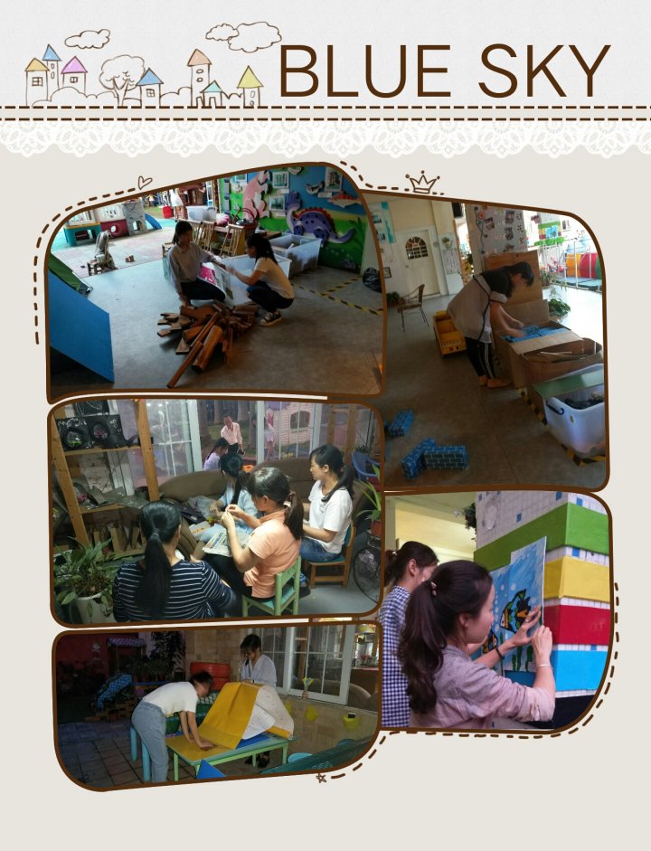 小班級組:承擔(dān)了戶外角色區(qū)、音樂區(qū)、玩沙區(qū)的環(huán)境與材料的創(chuàng)設(shè)與投放。在環(huán)境與材料的創(chuàng)設(shè)和投放中遇到的問題和進(jìn)一步的創(chuàng)設(shè)都作好記錄。例如:戶外角色區(qū):延伸室內(nèi)的角色游戲,利用戶外可能利用的空間(樹下、墻角、小房子)等作為比較固定的場所,角色道具采用真實(shí)的,可操作的(小灶、鍋、碗、水壺、仿真蔬菜、仿真水果等),利用大儲物箱、柜子放置角色活動的材料方便幼兒取放。