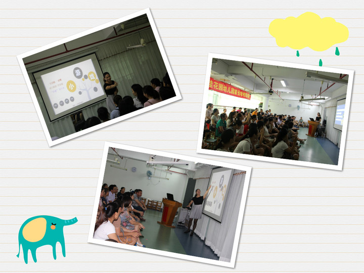 講座開始前,彭園長十分巧妙地通過一個小游戲來吸引家長,成功地將家長的注意力轉(zhuǎn)移到講座上來。