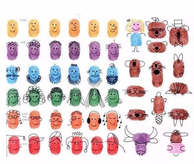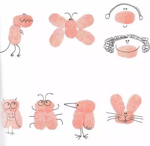 孩子的小手指輕輕一點(diǎn),彩筆簡(jiǎn)單勾勒,一幅色彩鮮艷、形象直觀的指印畫(huà)就完成啦!