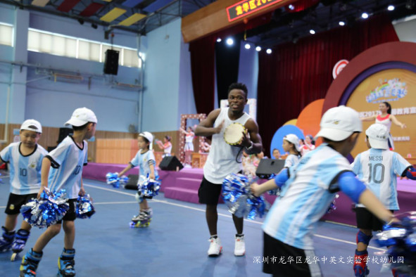 由深圳市龍華中英文實驗學校幼兒園的師生們?yōu)槲覀冄堇[了活力四射的開場舞《青春舞曲》。
