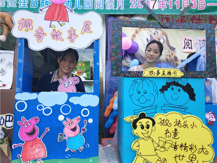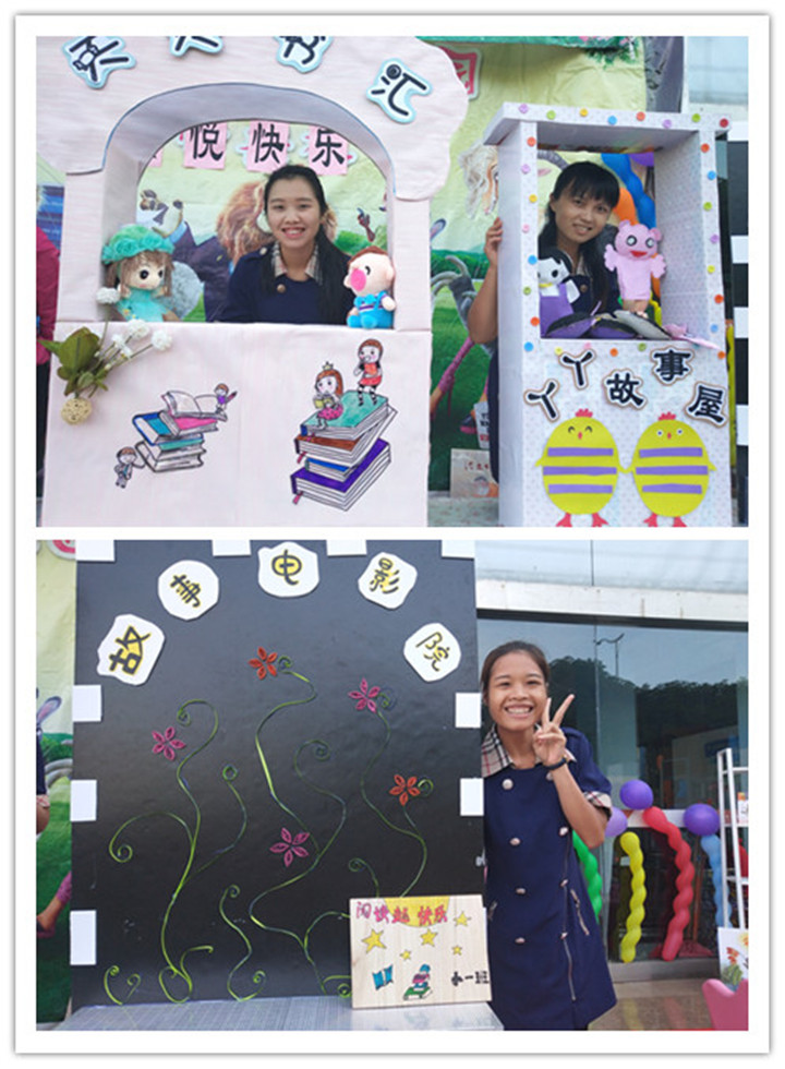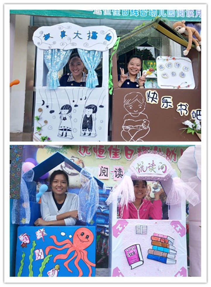 2.在濃郁的書(shū)香氛圍中,老師還特別為小朋友制作了故事小屋,還有響亮的閱讀月活動(dòng)口號(hào)