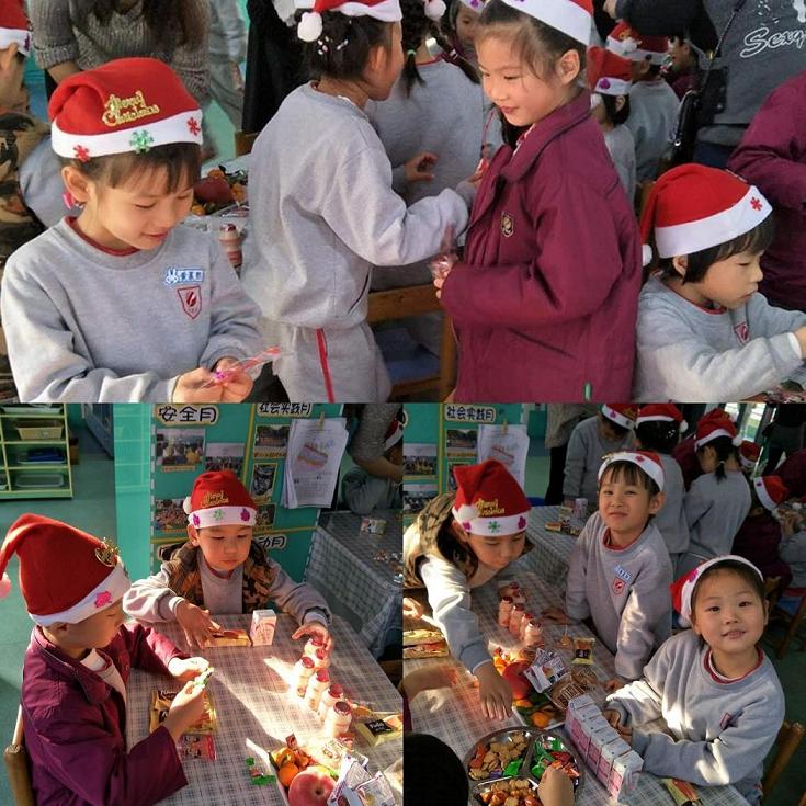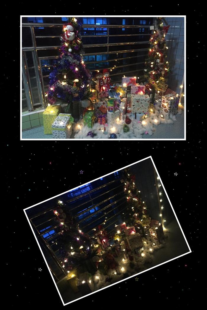 為了營造溫馨舒適的氣氛,老師們利用下班時間為我們布置精美的環(huán)境。一片熱鬧的景象,圣誕樹、圣誕老人、彩帶、雪花、鈴鐺、小彩燈烘托出了濃濃的圣誕氣息。