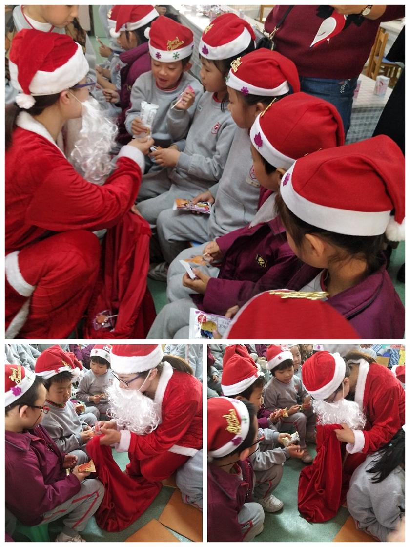 伴隨著熟悉的圣誕歌曲,圣誕老人一聲聲的“圣誕快樂!”并送上糖果,伴著圣誕祝福歌,讓每個孩子心里蕩漾著無比的快樂、幸福。