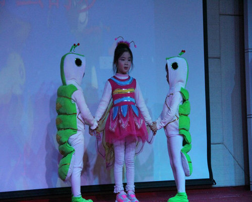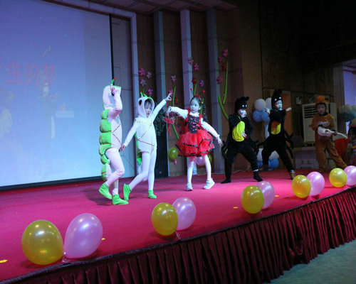小朋友們你們有夢想嗎?有....我想當歌唱家,我想當科學家,我想當舞蹈家.......看哪里來了一只小青蟲,它也有自己的夢想。童話劇表演《小青蟲的夢》。