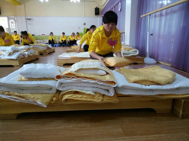 到了最激動(dòng)人心的時(shí)刻,第三項(xiàng)的保育老師的操作技能考核:2018年1月4日,今年我們的活動(dòng)主題是疊被子,扎頭發(fā)比賽。疊被子、扎頭發(fā)是我們保育老師每天都在做的事情,被子疊得好不好?給寶寶扎頭發(fā)美不美?這次活動(dòng)將給我們保育老師最好的展示自我的機(jī)會(huì)。我們邀請了各班級(jí)的代表家委與學(xué)校領(lǐng)導(dǎo)來做評(píng)委,比賽按照年級(jí)分組,分三組進(jìn)行疊被子、扎頭發(fā)的比賽。疊被子我們要求:套被子平整無皺褶,棱角分明,大小一致,整齊美觀,LOGO在同一個(gè)方向。比賽開始了,我們的保育老師疊被子的手法很嫻熟,每位老師都能在5分鐘內(nèi)疊完三套被子,真的是很厲害的,而且也達(dá)到了要求說的棱角分明、大小一致、整齊美觀、LOGO在同一個(gè)方向。