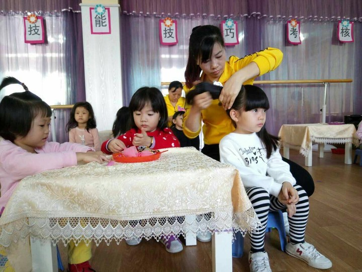 到了最后的扎頭發(fā)了,我們的保育老師扎頭發(fā)可是有要求的,要發(fā)型整潔、整齊、松緊適中,能根據(jù)幼兒頭發(fā)長度編扎適合的發(fā)型,發(fā)型時(shí)尚有新穎,并且能規(guī)定在6分鐘內(nèi)幫三個(gè)寶寶扎完頭發(fā),這次活動(dòng)真是讓我們的家委們大開眼界。我們來好好瞧瞧我們二幼的保育老師有多厲害,她們不單單能在規(guī)定時(shí)間內(nèi)完成,而且扎得很好看呢!一個(gè)個(gè)成果在6分鐘完成,展示在我們面前的是一道靚麗的風(fēng)景線,可見我們保育老師的工作效率真是又棒又快,真是不簡單!