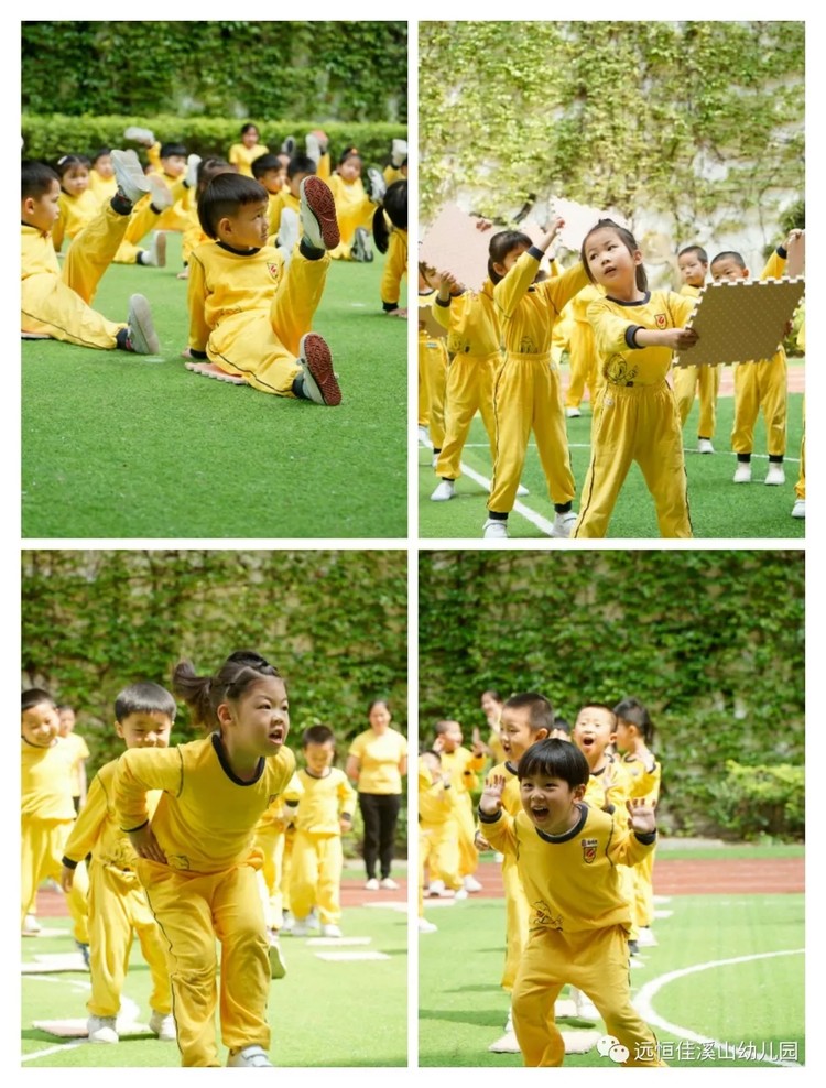 既充滿活力,又富有趣味,比如:面對(duì)面跑并做“哈”的動(dòng)作,坐立墊子上交替抬腿等, 讓人目不暇接!