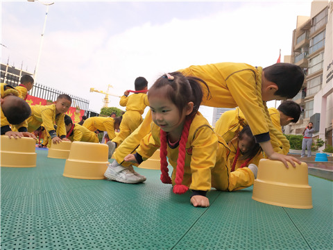 本學期中班組以“小小探險家”為主題,進行早操編排,其動作技能有效地增強體質,鍛煉身體發(fā)展的基本動作,同時也提高了幼兒對體育活動的積極性。在上學期的基礎上,增加了操節(jié)和體能鍛煉的難度,使體能活動更加有趣,激發(fā)幼兒的參與性。