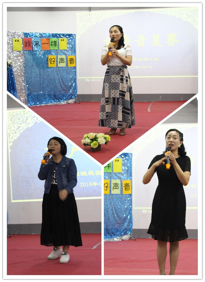 音樂(lè)是最靈動(dòng)的語(yǔ)言,有音樂(lè)相伴的生命會(huì)更加富有想象力和創(chuàng)造力。為了促進(jìn)我園幼兒的全面發(fā)展,提高教師的綜合素養(yǎng),增強(qiáng)家園互動(dòng),花園幼兒園在2018年4月9日下午,隆重舉行了以“我不一樣”為主題的好聲音的園級(jí)復(fù)賽,大、中、小級(jí)組的家長(zhǎng)和教師都參與了此次比賽。沈潔老師進(jìn)行這次比賽的主持。