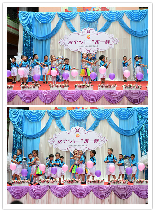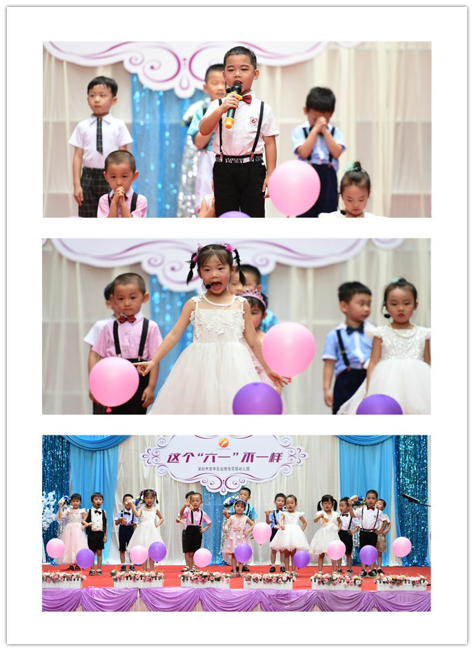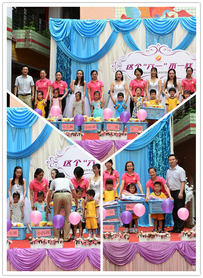 本次六一不一樣,小朋友們不僅是小演員,也是小觀眾。小朋友們、家長和教師都身著盛裝,展示不一樣的自我,場面熱鬧紛呈。教師的情景舞蹈《梔子花開》,讓觀眾在南方炎熱的天氣里感受到了淡淡花香,如癡如醉。幼兒舞蹈《聰明寶貝》、《可愛娃娃》、《我可喜歡你》,寶貝們用自己的活潑可愛的舞姿展示出一個個活潑、調(diào)皮、聰明、可愛的小寶貝。幼兒英語串燒,寶貝們年齡雖小,卻毫不遜色,在唱英文歌曲的同時,還展示出了自己對英文的喜愛,贏得觀眾的陣陣陣陣掌聲與歡笑。中班小主持《媽媽的目光》、《親愛的小孩》,調(diào)皮搗蛋的小家伙們分秒變身為落落大方的小主持,用自己最獨(dú)特的嗓音,表達(dá)著自己心中對媽媽的愛。在本次六一匯演的最后,集團(tuán)領(lǐng)導(dǎo)還為寶貝們贈送了六一兒童節(jié)禮物。六一匯演結(jié)束后,家長們陪同小朋友回到教室,進(jìn)行“水果拼盤比賽”,一起感受快樂的親子時光與享受美味多樣的水果。