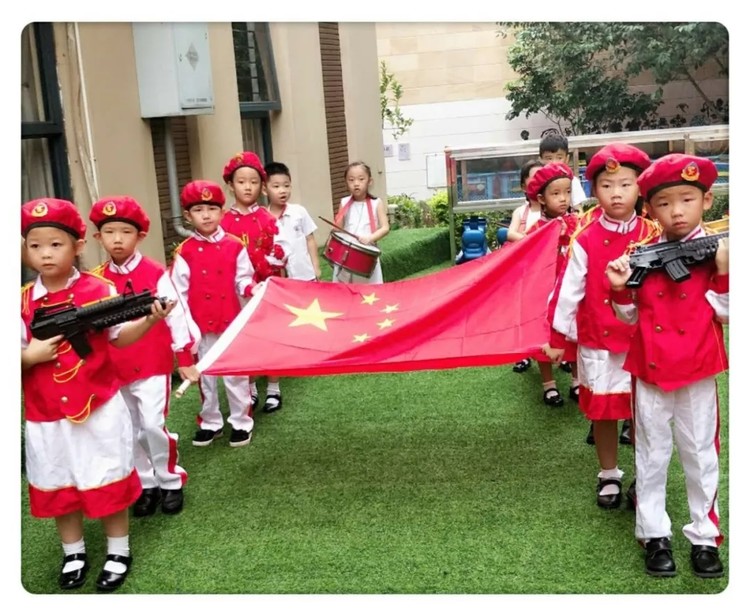 典禮在莊嚴(yán)的國歌聲中拉開了序幕,大班的小升旗手們踏著整齊的步伐護(hù)旗入場,全體師生對(duì)著冉冉升起的國旗行注目禮。