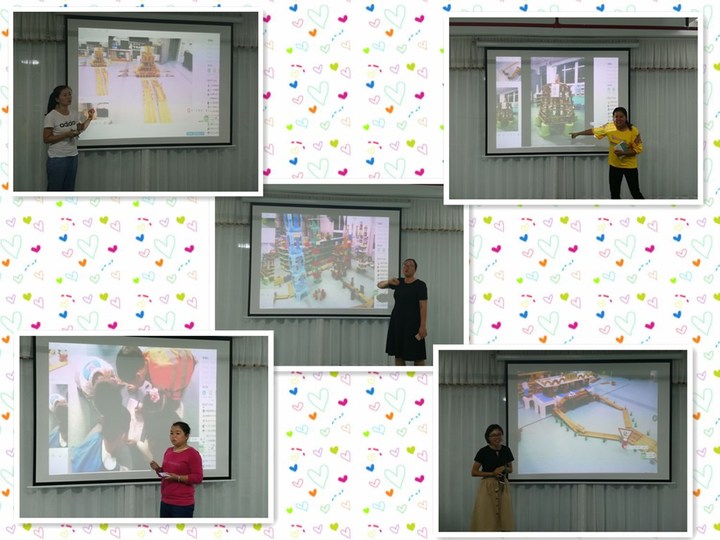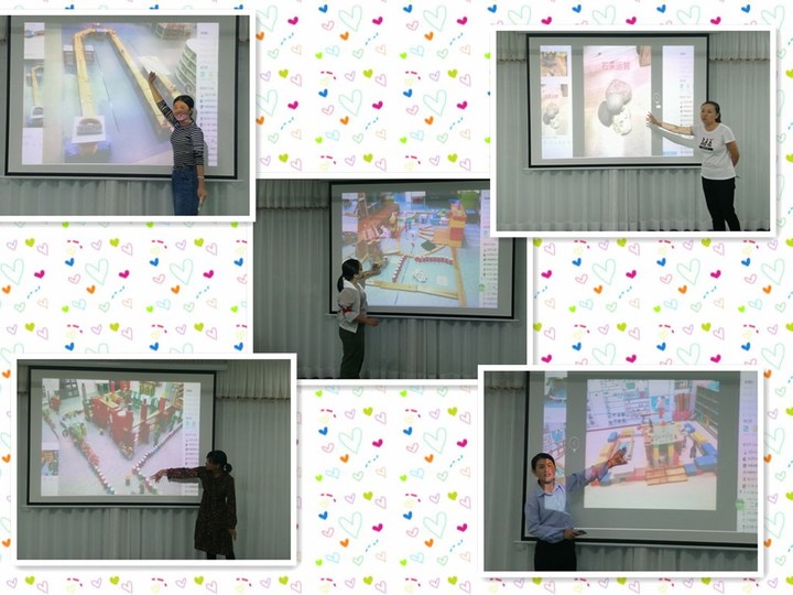 搭建結束后,老師們再次回到音體室分享自己的“作品”,向大家展現(xiàn)了屬于他們心中的精彩世界。幼兒園還組織老師們進到班級互相觀摩學習,相互介紹、探討搭建方法,積極尋找改進措施。