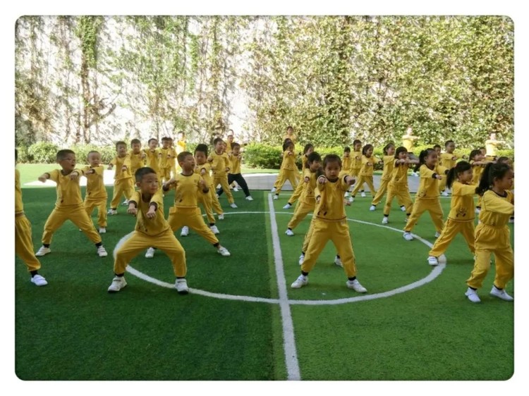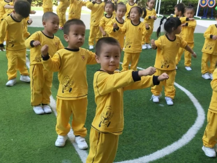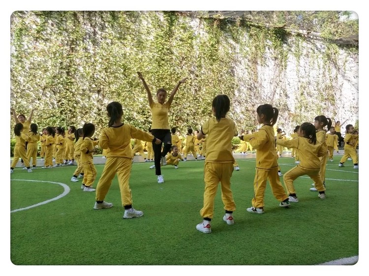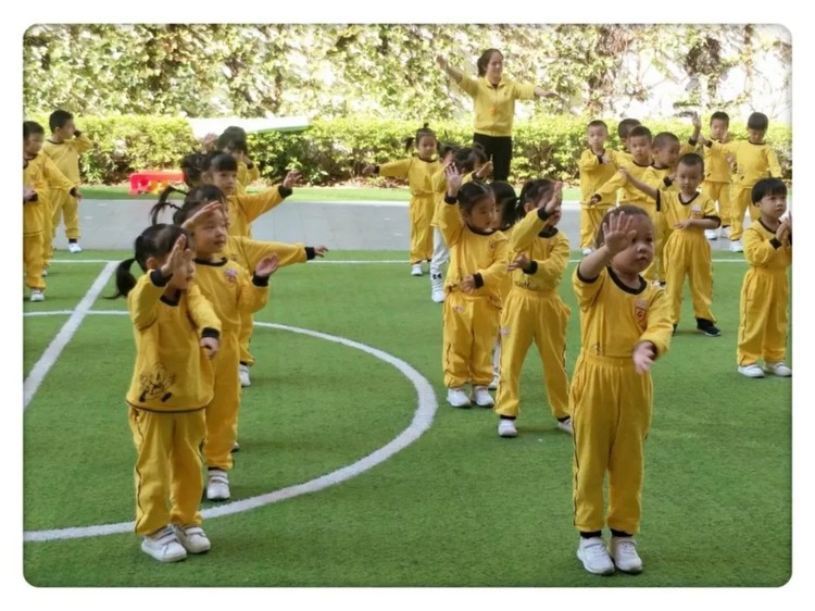 大班武術(shù)操《少年當(dāng)自強(qiáng)》,武術(shù)是中華傳統(tǒng)文化瑰寶,武術(shù)招式特別受大班幼兒所喜愛。操節(jié)展示中,干凈利落的動(dòng)作編排、場(chǎng)地方圓變化、激昂的音樂,使大班幼兒的肌肉得到鍛煉,同時(shí)激發(fā)幼兒熱愛祖國的情感。