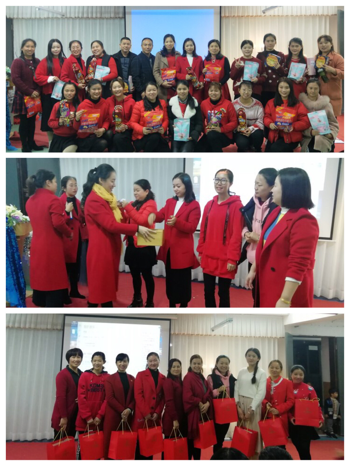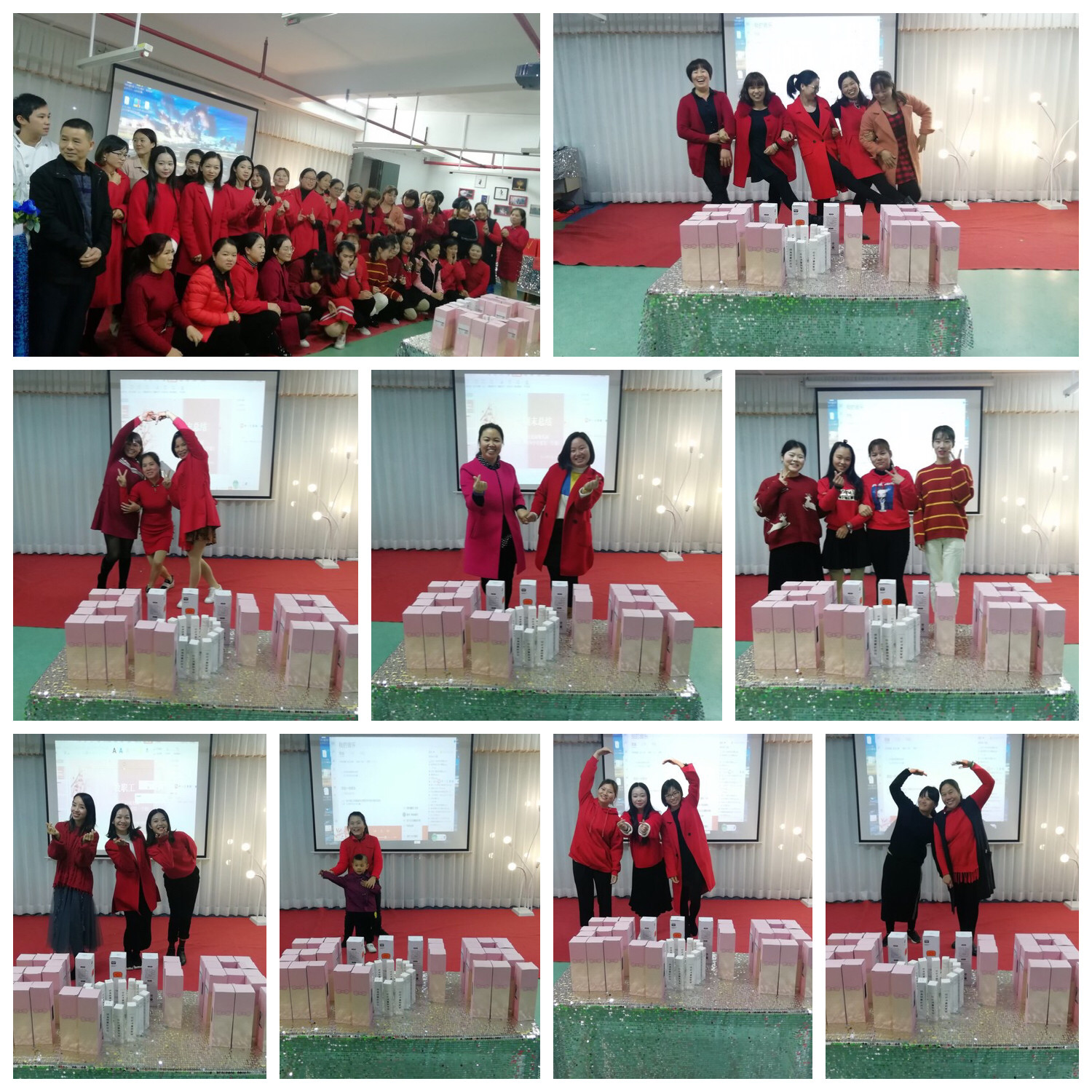 總結(jié)會結(jié)束后,緊接著就是幼兒園行政和工會主席共同精心策劃的教職工生日會。音體室里傳來了一陣陣歡聲笑語,壽星們一一登場展示自己的風(fēng)采,氣氛異常熱烈,充滿溫情與溫馨。伴隨著美妙的音樂,所有的老師拍手唱起生日快樂歌,分享禮物。